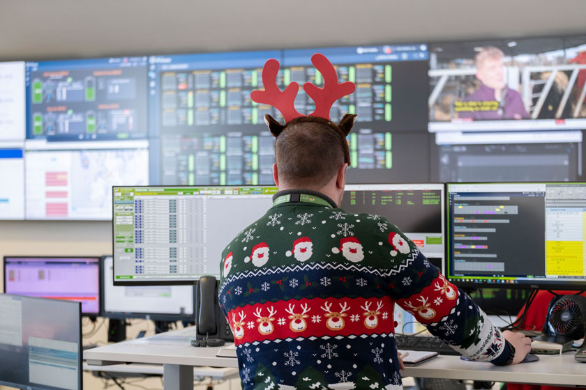 Staff at Whitelee Windfarm’s Control Centre are used to working day and night. Operational Controllers at the purpose-built facility monitor the status and performance of ScottishPower Renewables’ ever-increasing portfolio of windfarms 24 hours per day, 365 days a year – and Christmas is no different.