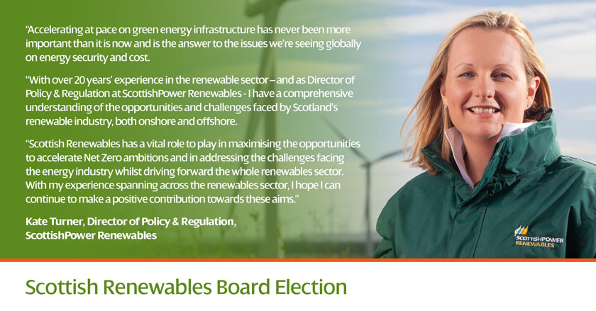 Our ScottishPower Renewables Director of Policy and Regulation, Kate Turner, is standing for election to the Scottish Renewables Board. She explains below why she is seeking the support of Scottish Renewables members.